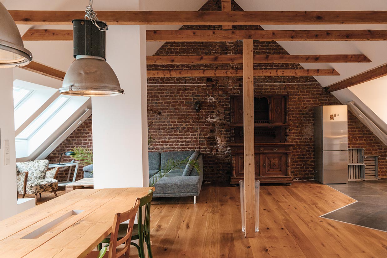 „Solche Böden bringen urbanes Flair in den Raum und sind gleichzeitig pflegeleicht und langlebig“, sagt HolzZeit Metelen in Metelen.